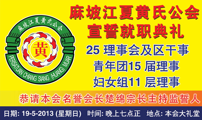 麻坡 ‧ 江夏堂黄氏公会 ‧ 新届理事就职典礼
